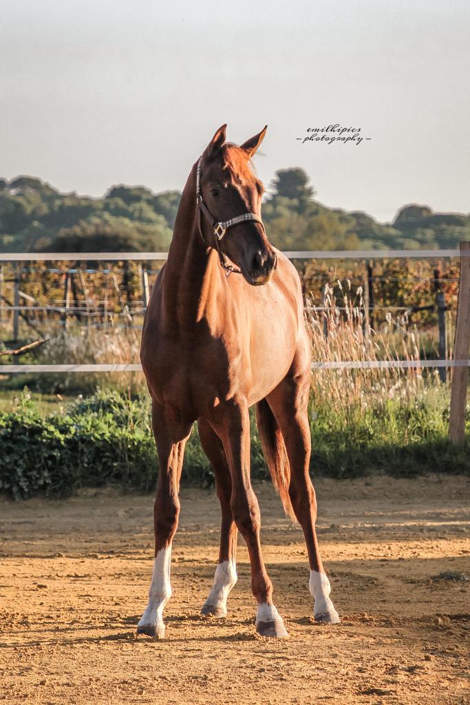 Le Haras des Mouettes vous présente ce poulain hongre de 2 ans alezan brulé très chic, qui sera grand (déjà 160cm) avec de la prestance, de l’élégance, proche de l’homme et déjà un caractère affirmé.